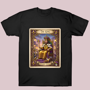 Rule the revelry with this stunning Mardi Gras Tarot–inspired design featuring The King in all his royal glory. Drenched in rich purples, golds, and greens, this artwork blends classic tarot styling with the vibrant spirit of New Orleans carnival.