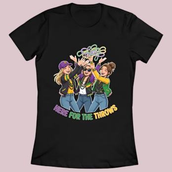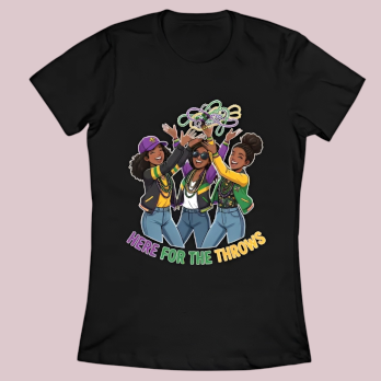 A joyful Mardi Gras design celebrating friendship, beads, and parade energy.