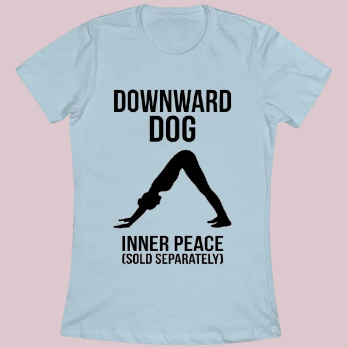 A minimalist yoga-inspired graphic tee featuring a clean silhouette pose paired with modern typography for a calm, architectural look. A subtle dose of dry humor makes it perfect for yoga lovers, design fans, and anyone still searching for inner peace.